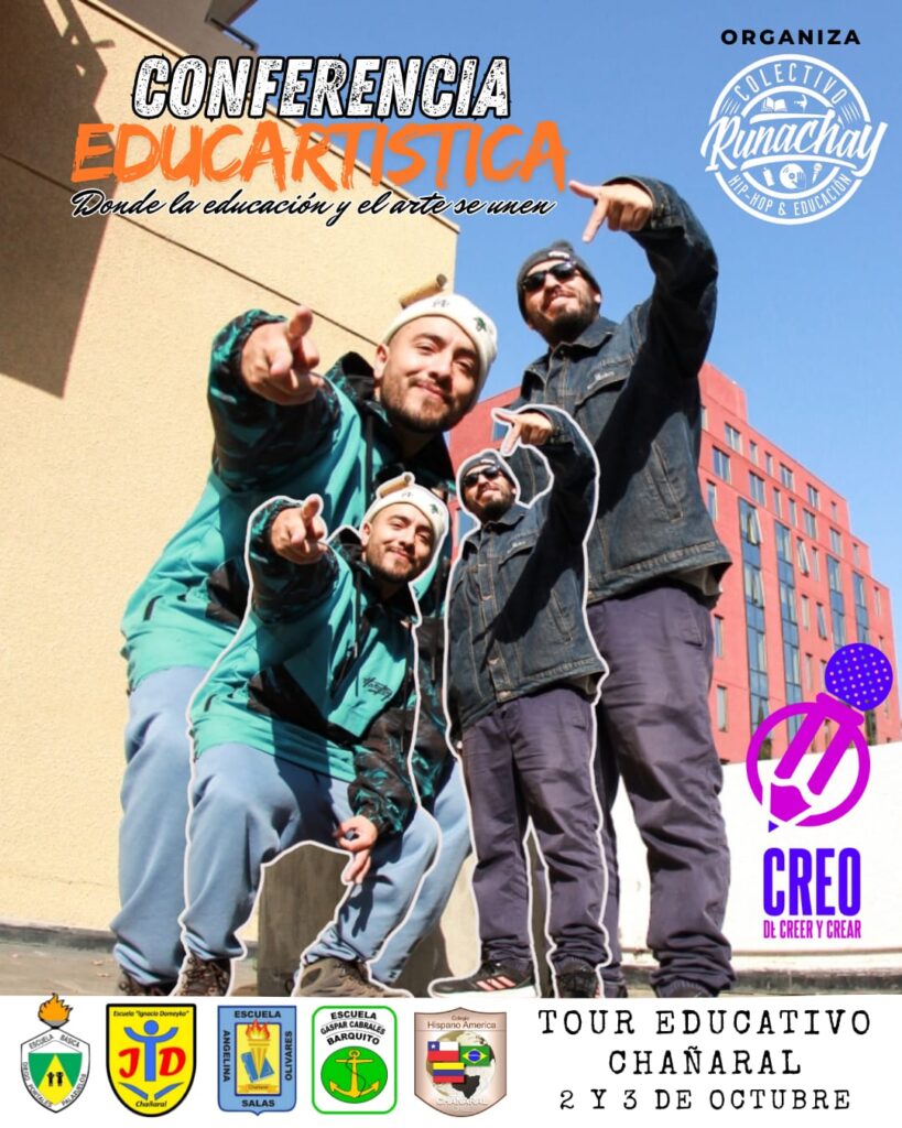 El pasado 2 y 3 de octubre de 2025, CREO de Creer y Crear recorrió la ciudad de Chañaral con su «Conferencia Educartística: donde la educación y el arte se unen». Esta instancia fue posible gracias a la invitación de la agrupación Runachay – Juventud por Chañaral, junto con el apoyo del Fondo de Fortalecimiento de Organizaciones de Interés Público (FFOIP).